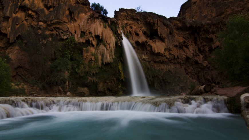 In Arizona gelegen, gehören diese Wasserfälle den Volksstamm Havasupai, das Volk der grünen -blauen Gewässer. Die Wasserfälle fallen und bilden ein natürliches Schwimmbad welches in seinem Innern eine ständige Temperatur von 20 Grad bewahrt.
